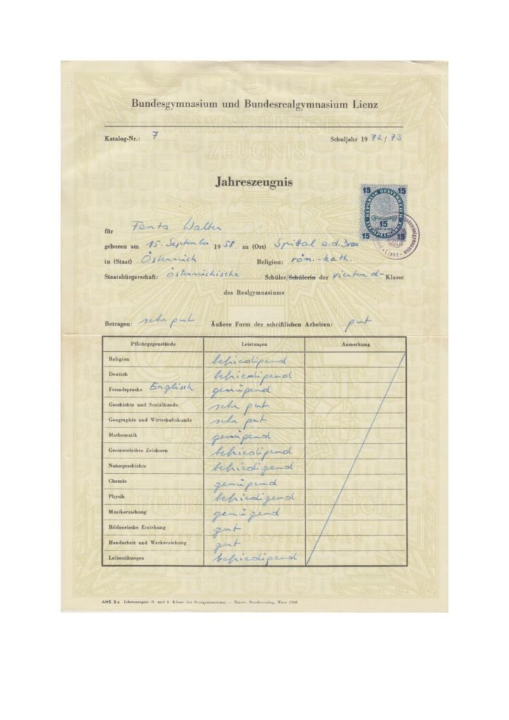 Dieses Foto dürfte aus der vierten Klasse stammen, von links nach recht: Gerald Kuenz, Klaus Ott, Walter Fanta, Werner Erlsbacher, Alois Rainer
