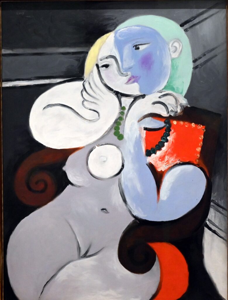 An der Wand erscheint neben dem Gemälde „Weiblicher Akt in einem roten Sessel, 1932“ die Projektion von „Bildnis Dora Maar, 1937“, hierzu eine sinnlich aufwühlende Musik.
