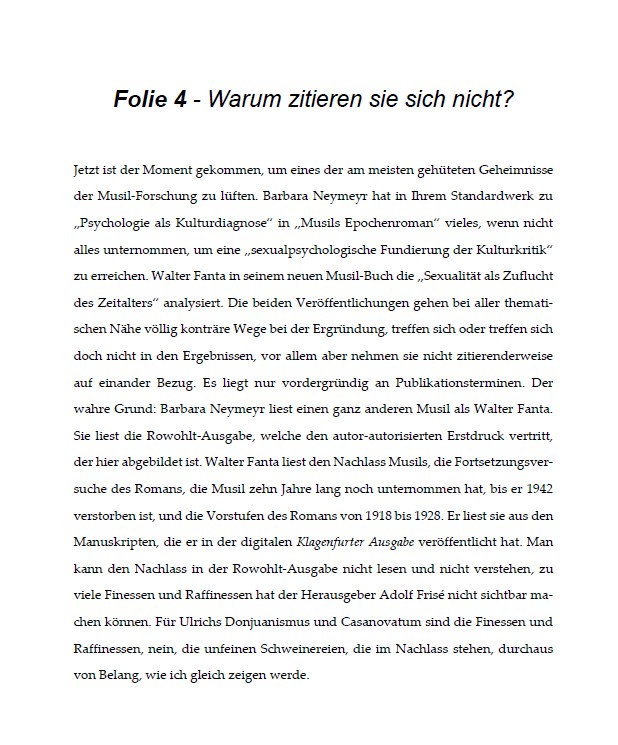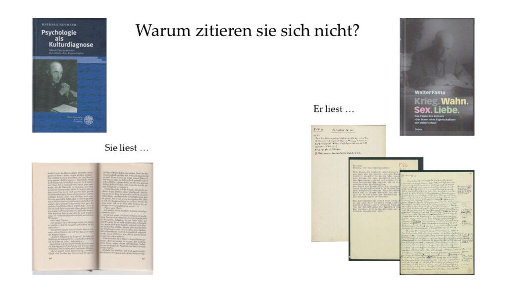 Am 4. Mai 2016 hat mich der Teufel geritten. Ich kann mir heute nicht mehr vorstellen, warum ich das getan habe, doch habe ich bei meinem Vortrag im Rahmen der Ringvorlesung „Casanova und Don Juan. Verführer-Mythen und ihre Metamorphosen in der Kulturgeschichte“ mit dem Titel „Endlich ein Mann, der nicht immer nur das eine will: Musils Mann ohne Eigenschaften“ im Hörsaal der Alpen-Adria-Universität Barbara Neymeyr offen angegriffen und düpiert, mit der Frage: „Warum zitieren sie sich nicht?“ Zumindest hat sie es so aufgefasst. Dabei habe ich doch sachlich argumentiert, – oder? Später habe ich dennoch Abbitte geleistet, es gab ein überraschendes Nachspiel.